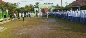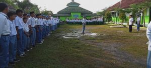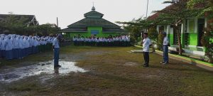 dalam upacara bendera kali ini kepala madrasah Ma Mathla’ul Anwar gunung baru yang bertugas menjadi pembina upacara..